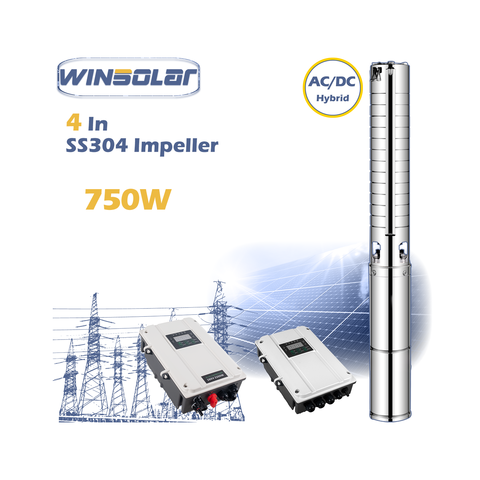 WINSOLAR 4インチステンレス鋼インペラー600W AC DCハイブリッドソーラーボアホールポンプ